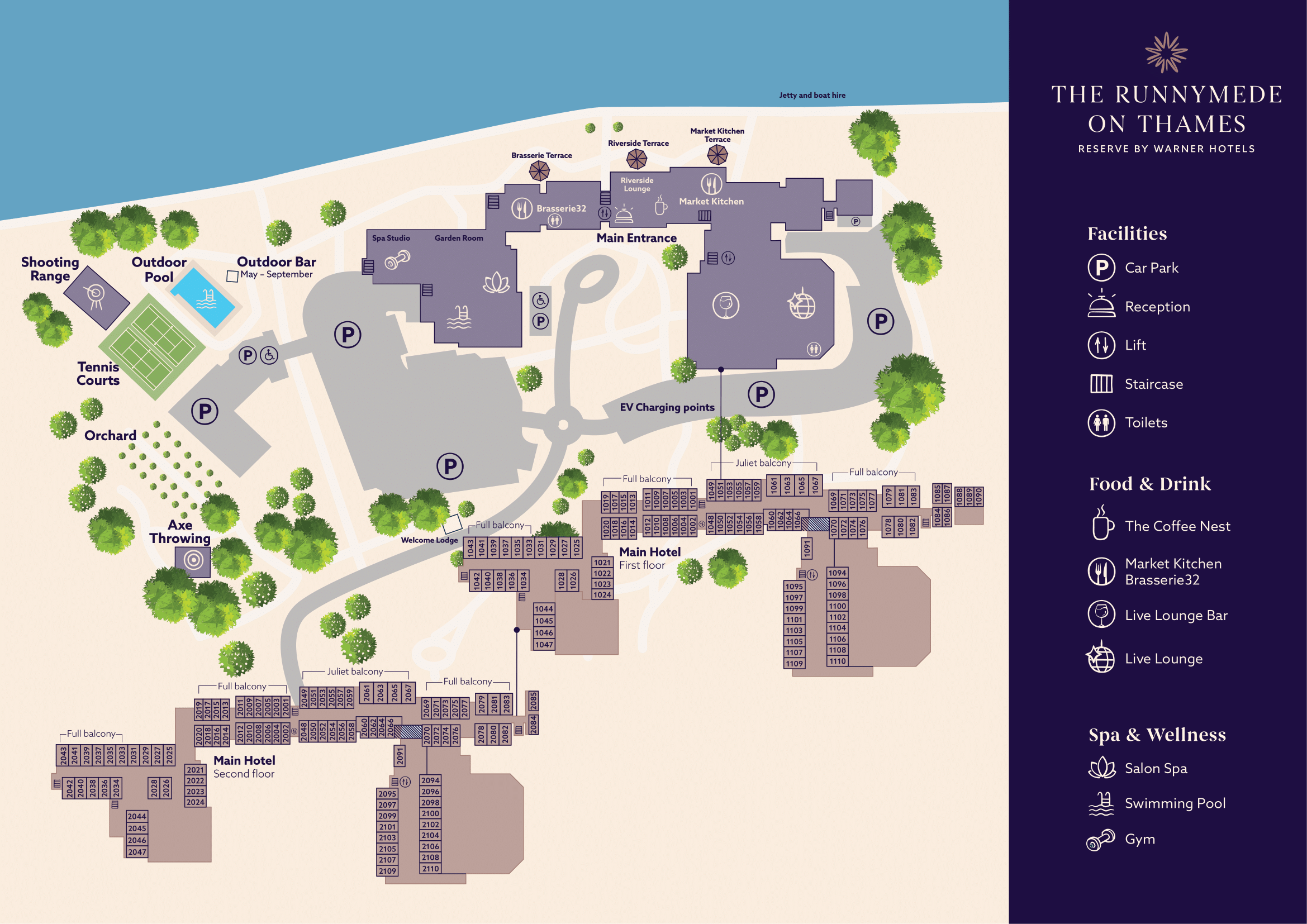 Is there a map of The Runnymede on Thames that shows room locations?