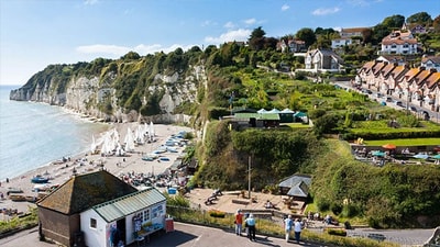 A shingle beach surrounded by white chalk cliffs, the village of Beer is the quintessential Jurassic Coast. Guided tours of the 2,000-year-old man-made caves run several times a day, and mackerel-laden boats deliver fresh catches to the village's eateries.