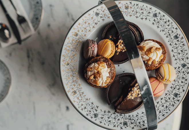 Savour three tiers of sandwiches, speciality cakes and scones with clotted cream and preserves, all served with coffee or speciality loose-leaf teas from just £22.80 per person.